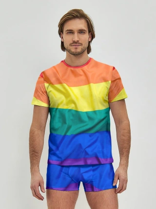 Мужские трусы с футболкой / Радуга - мятая ткань полотно