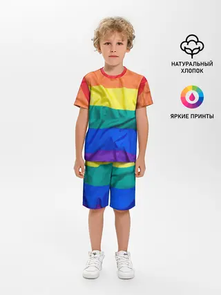 Детская пижама с шортами / Радуга - мятая ткань полотно