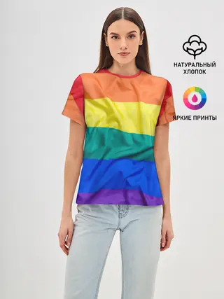 Женская базовая футболка / Радуга - мятая ткань полотно