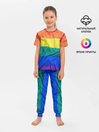 Детская пижама с брюками / Радуга - мятая ткань полотно