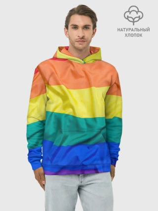 Худи мужской база хлопок / Радуга - мятая ткань полотно