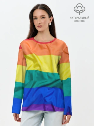 Лонгслив женский. Хлопок / Радуга - мятая ткань полотно