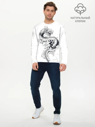 Мужской лонгслив базовый / Китайский дракон на белом фоне