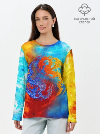 Лонгслив женский. Хлопок / Битва огней x Драконы