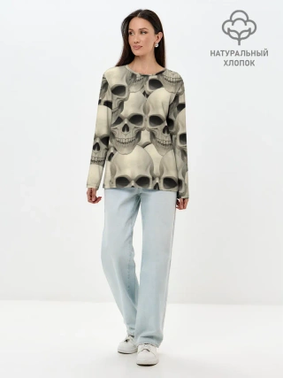 Лонгслив женский. Хлопок / Черепа