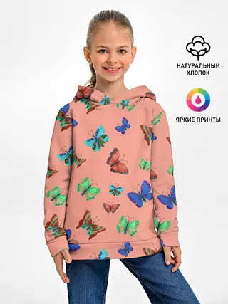 Детское худи / Бабочки на персиковом фоне