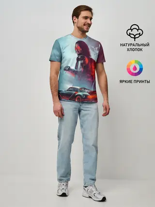 Мужская базовая футболка / Cyberpunk 2077 | Джонни и Порш