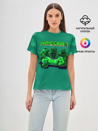 Женская базовая футболка / Операция над Крипером | Майнкрафт