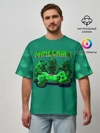 Мужская футболка оверсайз / Операция над Крипером | Майнкрафт