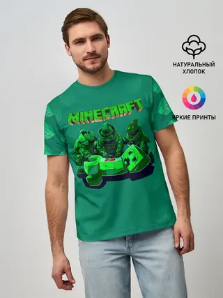 Мужская базовая футболка / Операция над Крипером | Майнкрафт