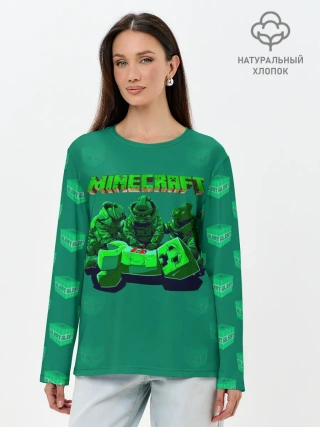 Лонгслив женский. Хлопок / Операция над Крипером | Майнкрафт