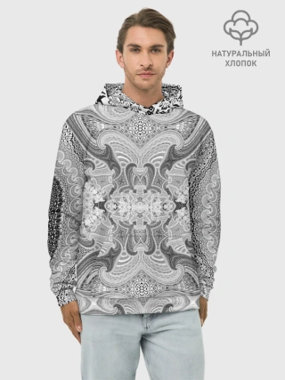 Худи мужской база хлопок / Черно-белый абстрактный узор.
