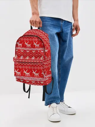 Рюкзак детский / Новогодний узор с оленями и елкой