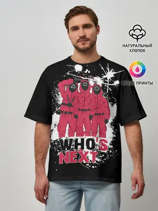 Мужская футболка оверсайз / Squid game: Whos Next? Кто следующий