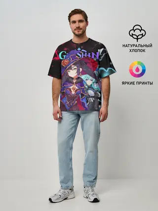 Мужская футболка оверсайз / Мона и Эола, Genshin Impact