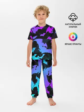Детская пижама с брюками / ЛЕТУЧИЕ МЫШИ ХЕЛЛОУИН НЕОН / HALLOWEEN NEON