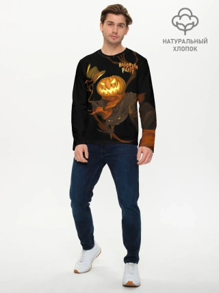 Мужской лонгслив базовый / Приветливая тыква на Хэллоуин