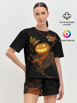 Женская пижама с шортами / Приветливая тыква на Хэллоуин