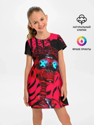 Женская футболка оверсайз / Красный скелет в диком лесу