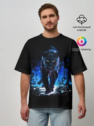 Мужская футболка оверсайз / Черная пантера пятна краски