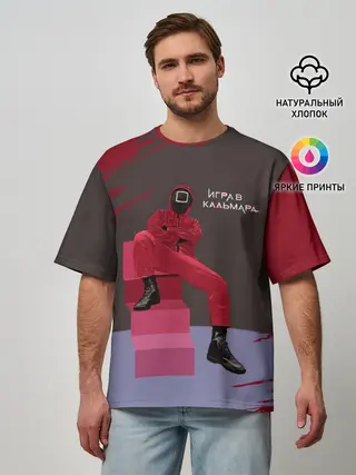 Мужская футболка оверсайз / КВАДРАТ НА ОТДЫХЕ | ИГРА В КАЛЬМАРА
