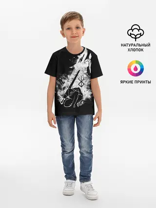 Детская базовая футболка / БЕРСЕРК БЕЛЫЙ ГАТС С МЕЧОМ