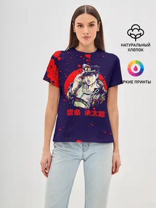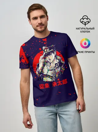 Мужская футболка оверсайз / Дзётаро красные брызги