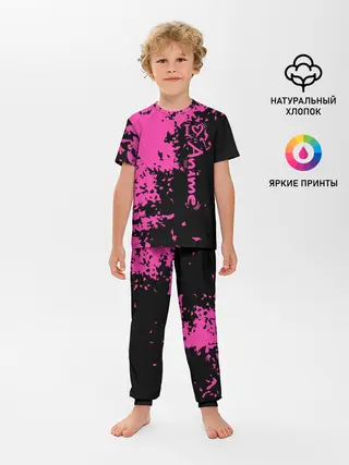 Детская пижама с брюками / Love anime розовые кляксы на черном