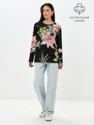 Лонгслив женский. Хлопок / Букет лилий