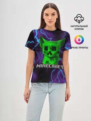Женская базовая футболка / MINECRAFT CREEPER CAT