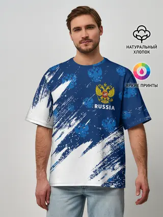 Мужская футболка оверсайз / RUSSIA / РОССИЯ