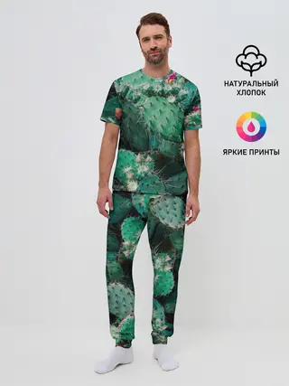 Мужская футболка оверсайз / кактусы с цветами реализм