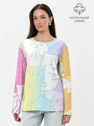 Лонгслив женский. Хлопок / Котоколлаж 05