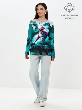 Лонгслив женский. Хлопок / Череп в дыму
