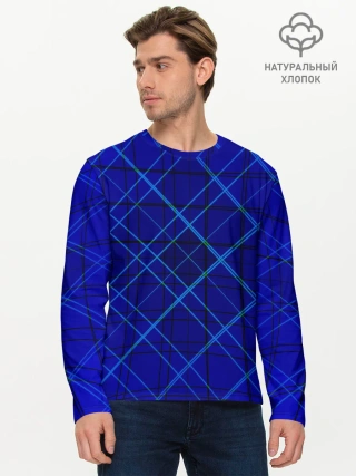 Мужской лонгслив базовый / Сине-черная геометрия 3D