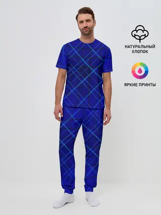 Мужская пижама с брюками / Сине-черная геометрия 3D