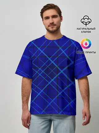 Мужская футболка оверсайз / Сине-черная геометрия 3D