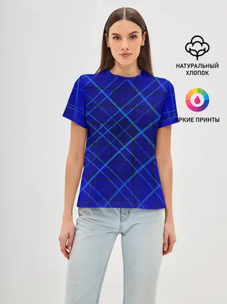 Женская футболка оверсайз / Сине-черная геометрия 3D