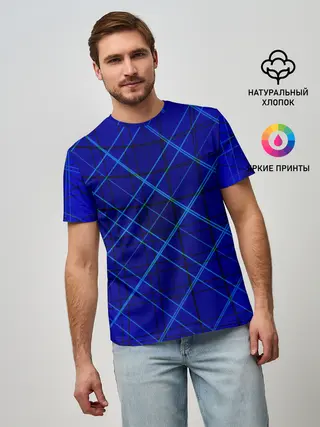 Мужская базовая футболка / Сине-черная геометрия 3D
