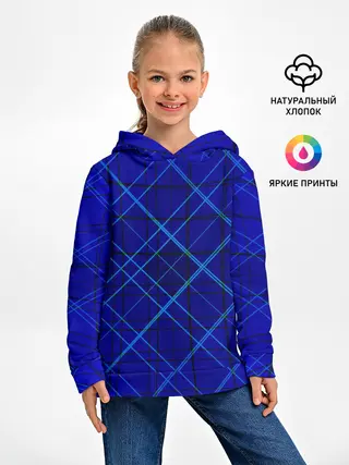 Худи мужской база хлопок / Сине-черная геометрия 3D