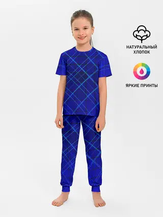 Детская пижама с брюками / Сине-черная геометрия 3D