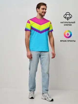 Мужская футболка оверсайз / Цветные треугольники_голубой