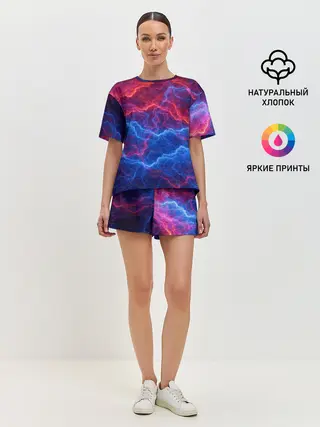 Женская футболка оверсайз / Молнии: Огонь и лед
