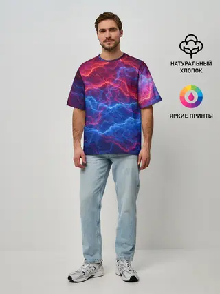 Мужская футболка оверсайз / Молнии: Огонь и лед