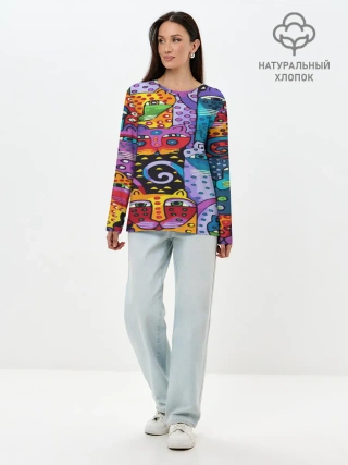 Лонгслив женский. Хлопок / КОТЯТА ЖИВОПИСЬ