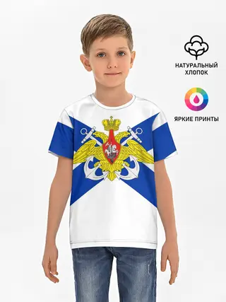 Детская базовая футболка / Андреевский Флаг | ВМФ