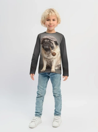Детский лонгслив / Мопс в кепке