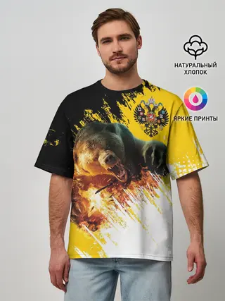 Мужская футболка оверсайз / Имперский флаг и медведь