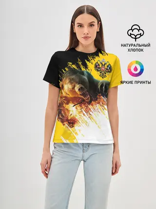 Женская базовая футболка / Имперский флаг и медведь