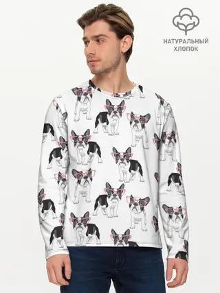 Мужской лонгслив базовый / Французские бульдоги в очках